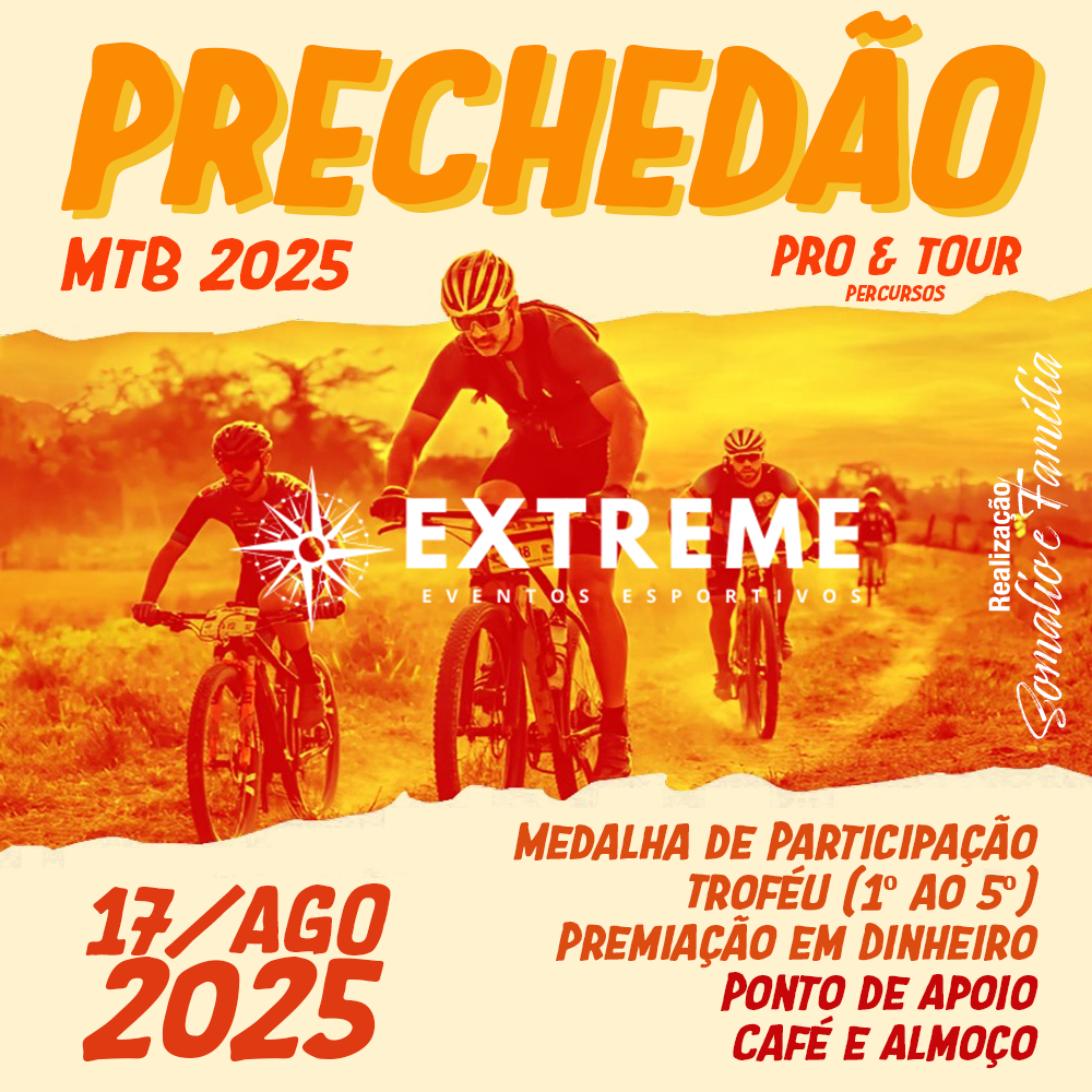 PRECHEDÃO 4.0 | Novo Cruzeiro - MG Moutain Bike Categoria Pro Masculino Categoria Pro Feminino Categoria Sport Masculino Categoria Sport Feminino Categoria Sport PNE Categoria E-BIKE Premiação: Inscrição: