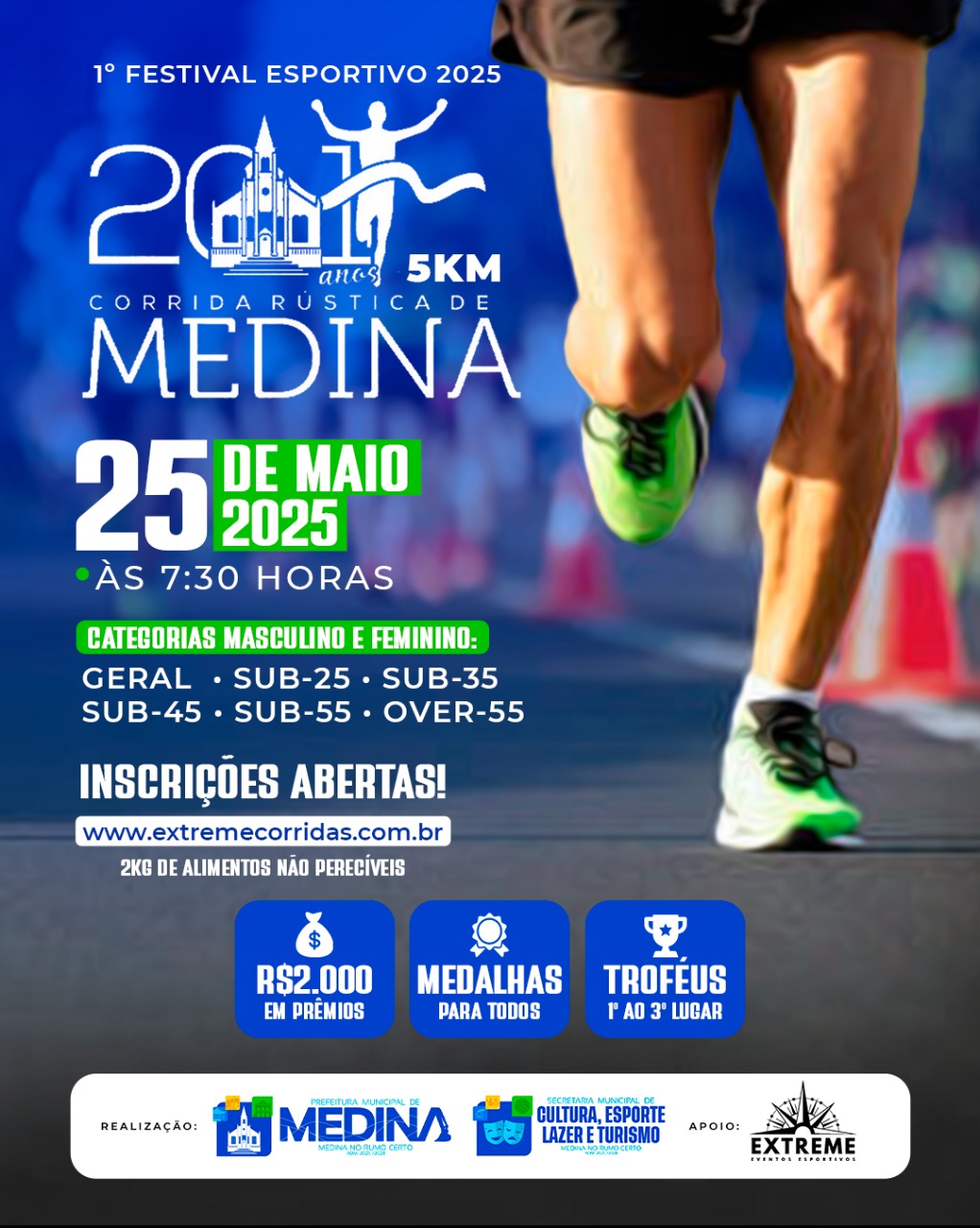 1º Festival Esportivo 2025 Corrida de Rua Categorias Masculino e Feminino Premiação: Inscrição: